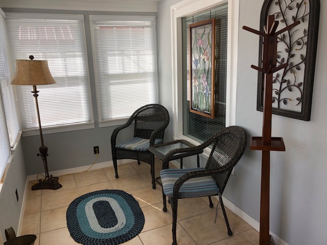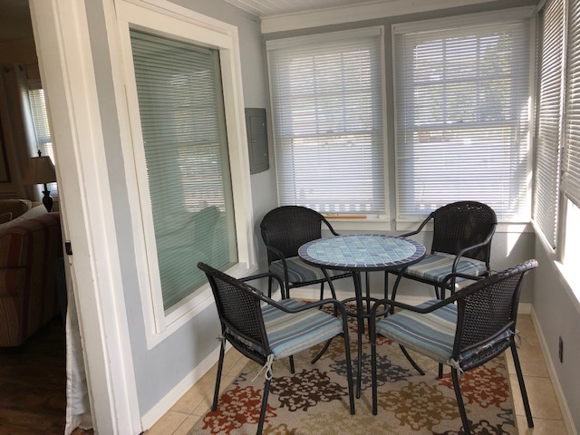 Outside we have a private fenced back yard, including a patio set with umbrella and a Weber grill. The front porch is entirely enclosed with seating area for lounging and a café table for morning coffee.